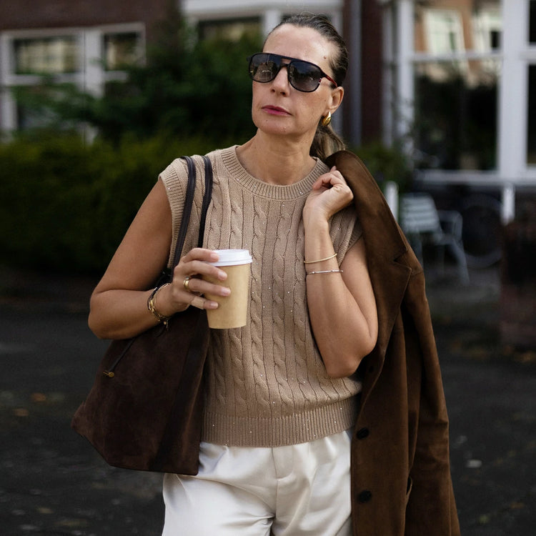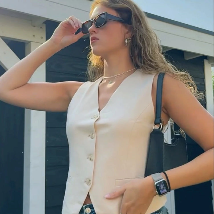 Feature: Sleeveless strap, neck, ribbed fabric, loose fit, classic and fashion, side hidden pockets