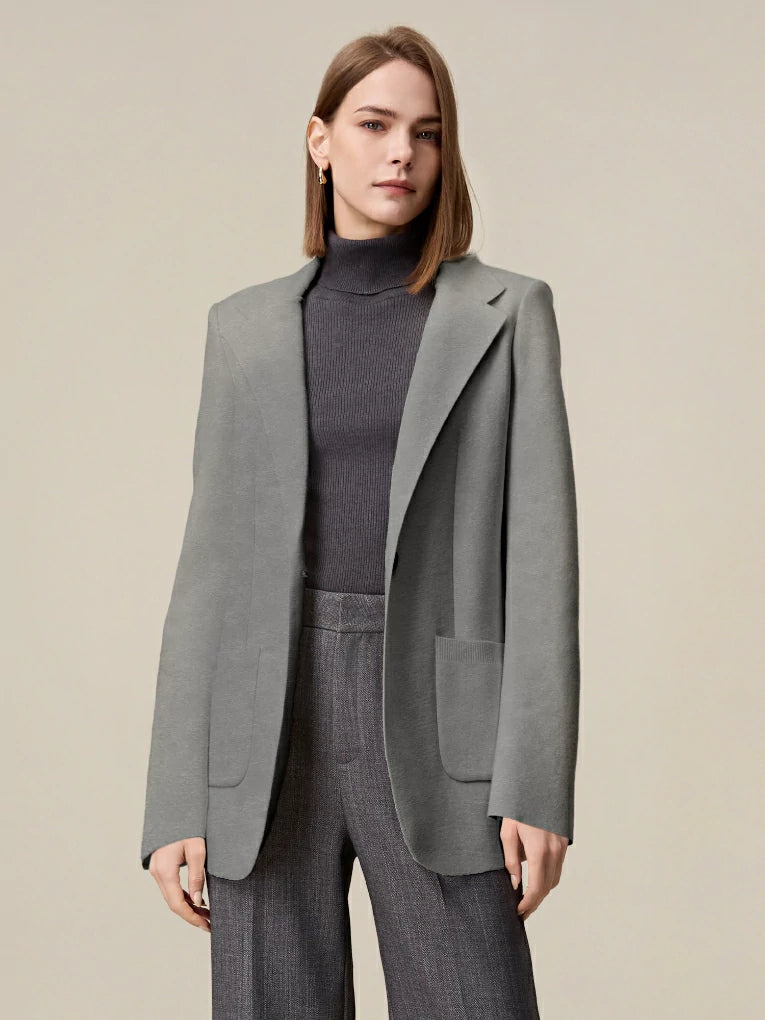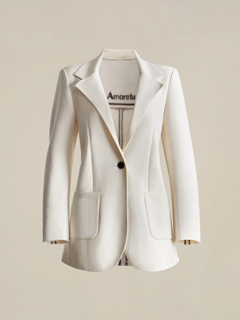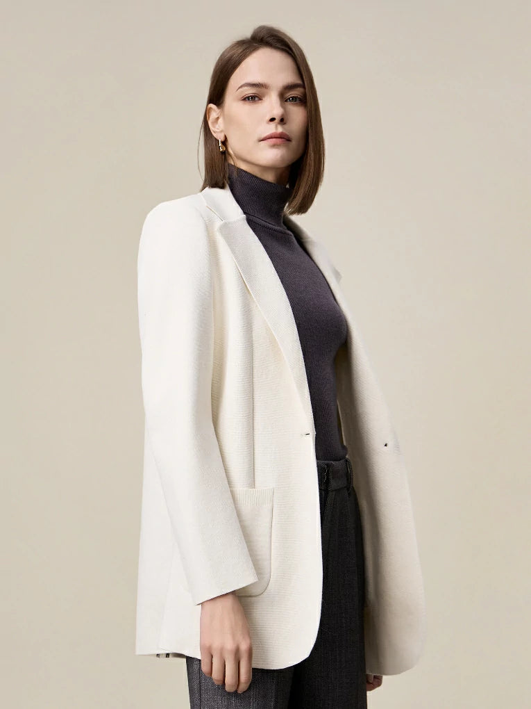 Though the intricate 3D "Four-Stockinette and Air Layer " Knitting, different stitches correspond to different pieces, enabling the realization of unique details in each part of the blazer's design.