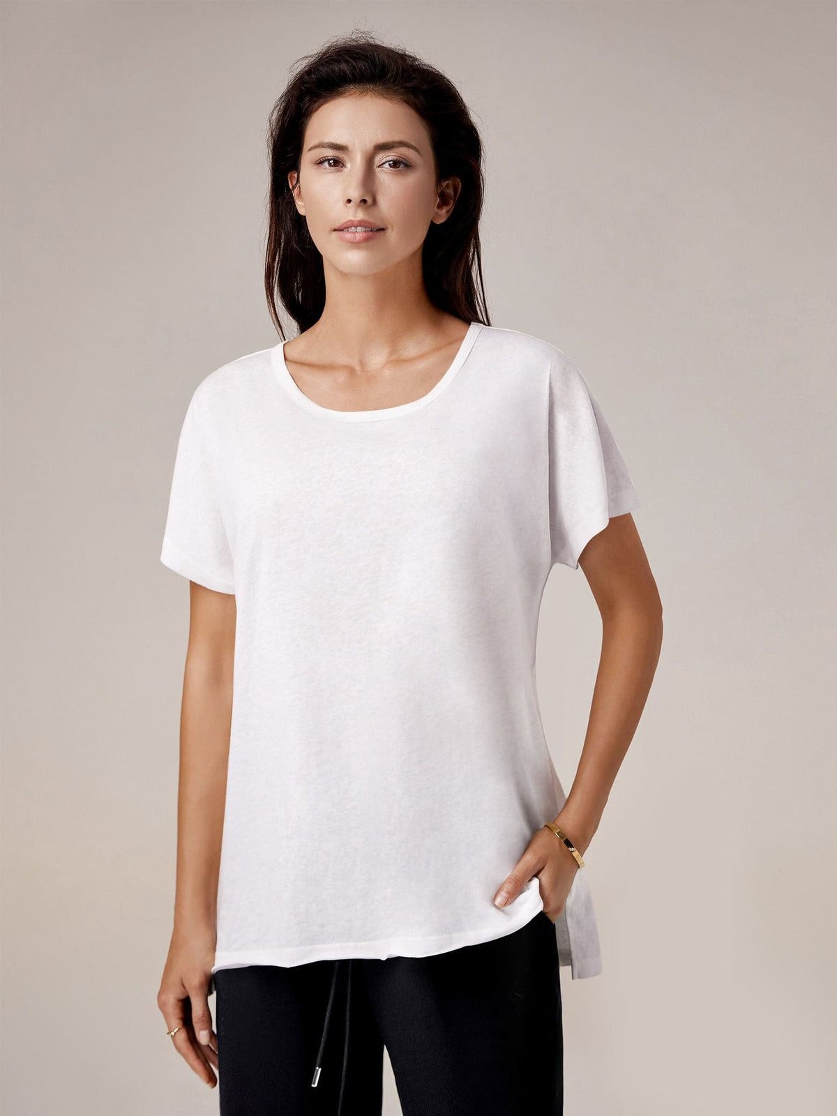 MATCHING: Round neck slit T-shirt is a very good and versatile tool in summer, it is a classic and unique match with skirts, jeans, bustier skirts, yoga pants, casual pants, sweatpants and leggings, and the two side slits on the hem of the small design will elongate your figure and look young and energetic.
