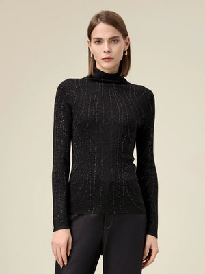 Amoretu Wool Mock Neck Rhinestone Backless Knit Dress