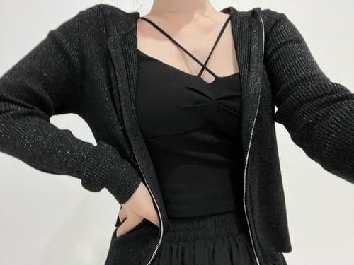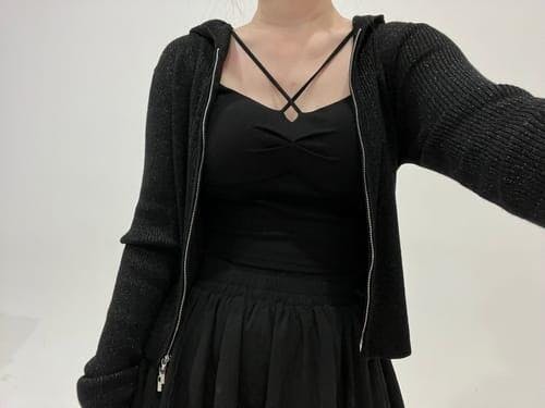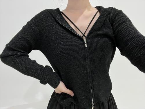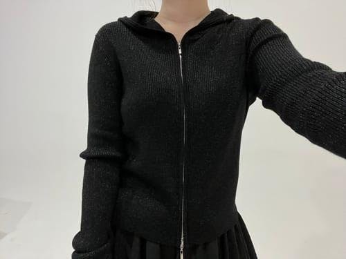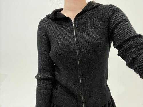 Amoretu Wool Gold Silver Yarn Zip-up Sweater Cardigan